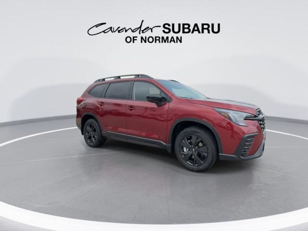 Features: Standard Model, 3rd row seats: bench, 4-Wheel Disc Brakes, 6 Speakers, ABS brakes, Air Conditioning, Alloy wheels, AM/FM radio: SiriusXM with 360L, Apple CarPlay & Android Auto, Auto High-beam Headlights, Auto-dimming Rear-View mirror, Automatic temperature control, Brake assist, Bumpers: body-color, Compass, Delay-off headlights, Driver door bin, Driver vanity mirror, Dual front impact airbags, Dual front side impact airbags, Electronic Stability Control, Emergency communication system: MySubaru Companion (5-years free), Exterior Parking Camera Rear, Four wheel independent suspension, Front anti-roll bar, Front Bucket Seats, Front Center Armrest, Front dual zone A/C, Front fog lights, Front reading lights, Fully automatic headlights, Garage door transmitter: HomeLink, Heated door mirrors, Heated Front Bucket Seats, Heated front seats, Illuminated entry, Knee airbag, Leather Shift Knob, Leather steering wheel, Low tire pressure warning, Occupant sensing airbag, Outside temperature display, Overhead airbag, Overhead console, Panic alarm, Passenger door bin, Passenger vanity mirror, Power door mirrors, Power driver seat, Power Liftgate, Power steering, Power windows, Radio data system, Radio: Subaru 11.6" Multimedia Plus System, Rear air conditioning, Rear anti-roll bar, Rear reading lights, Rear window defroster, Rear window wiper, Reclining 3rd row seat, Remote keyless entry, Security system, Speed control, Speed-sensing steering, Split folding rear seat, Spoiler, StarTex-Trimmed Upholstery, Steering wheel mounted audio controls, Tachometer, Telescoping steering wheel, Tilt steering wheel, Traction control, Trip computer, Turn signal indicator mirrors, Variably intermittent wipers, and Wheels: 18" x 7.5 J Black Finish Aluminum Alloy.