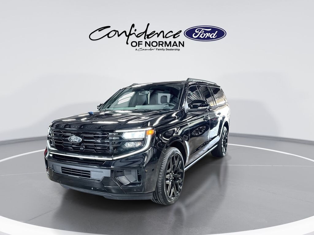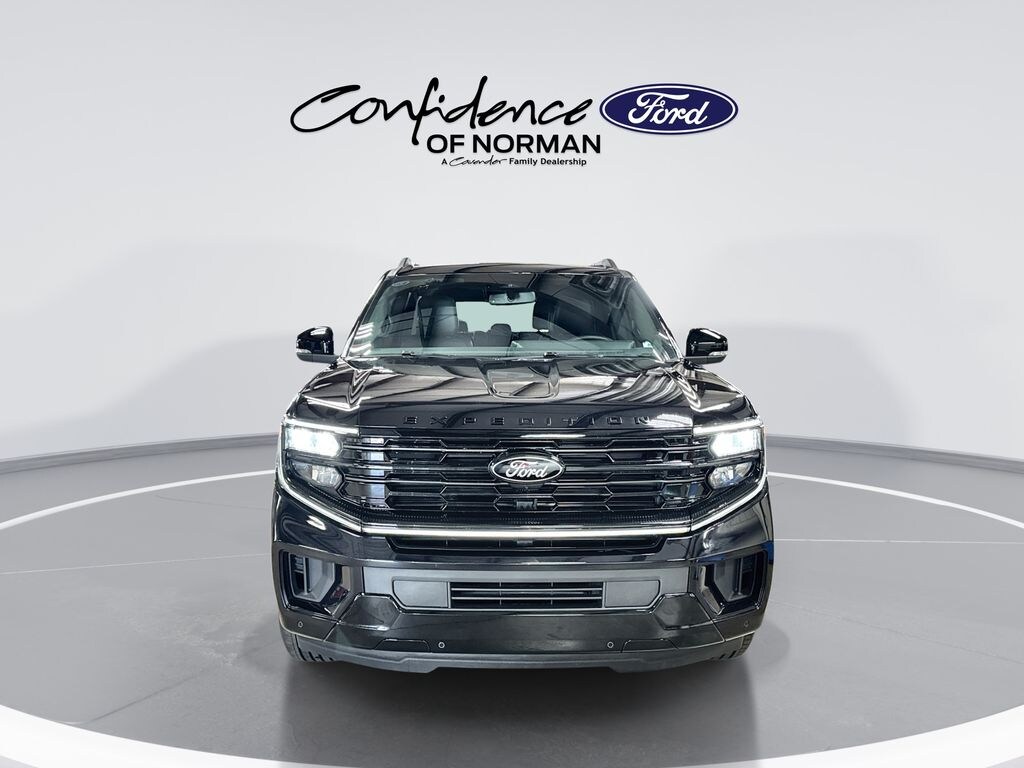 Features: Driver's Package (Radio: B&O Play Unleashed and SiriusXM with 360L), Ford Connectivity Package (1-Year Included), Stealth Appearance Package (Black Belt Molding, Black Expedition Lettering on Hood, Black Headlamp Bezel with Ebony Trim Applique, Black Platinum Badge on Tailgate, Black Roof Rails, Carbon Black Front Bumper/Fascia, Rear Side Windows Laminated Glass, and Signature Grille Lighting), Stealth Performance Package (Black Onyx Painted Power Deployable Running Boards, Engine Sound Enhancer, High Flow Exhaust System, and Wheels: 24" x 9.5" Ebony Painted Aluminum), 10 Speakers, 2nd Row Power-Folding Captain's Chairs, 3.73 Axle Ratio, 3rd row seats: split-bench, 4-Wheel Disc Brakes, ABS brakes, Air Conditioning, Alloy wheels, AM/FM radio: SiriusXM with 360L, Apple CarPlay/Android Auto, Auto High-beam Headlights, Auto-dimming door mirrors, Auto-dimming Rear-View mirror, Automatic temperature control, Brake assist, Bumpers: body-color, Compass, Delay-off headlights, Driver door bin, Driver vanity mirror, Dual front impact airbags, Dual front side impact airbags, Electronic Stability Control, Emergency communication system: 911 Assist, Exterior Parking Camera Rear, Ford Digital Experience, Four wheel independent suspension, Front anti-roll bar, Front Bucket Seats, Front Center Armrest, Front dual zone A/C, Front reading lights, Fully automatic headlights, Garage door transmitter, Genuine wood dashboard insert, Genuine wood door panel insert, Heated and Ventilated Leather Front Captain's Chairs, Heated door mirrors, Heated front seats, Heated rear seats, Heated steering wheel, Illuminated entry, Leather steering wheel, Low tire pressure warning, Memory seat, Navigation System, Occupant sensing airbag, Outside temperature display, Overhead airbag, Overhead console, Panic alarm, Passenger door bin, Passenger vanity mirror, Power door mirrors, Power driver seat, Power moonroof: Vista Roof, Power passenger seat, Power steering, Power windows, Radio data system, Radio: B&O Sound System by Bang and Olufsen, Rain sensing wipers, Rear air conditioning, Rear anti-roll bar, Rear reading lights, Rear window defroster, Rear window wiper, Reclining 3rd row seat, Remote keyless entry, Security system, Speed control, Speed-sensing steering, Speed-Sensitive Wipers, Split folding rear seat, Spoiler, Steering wheel memory, Steering wheel mounted audio controls, Tachometer, Telescoping steering wheel, Tilt steering wheel, Traction control, Trip computer, Turn signal indicator mirrors, Variably intermittent wipers, Ventilated front seats, Voltmeter, Wheels: 20" x 8.5" Ebony Bright Machined Aluminum, and Wheels: 22" x 9.0" Ebony Bright Machined Face Aluminum.