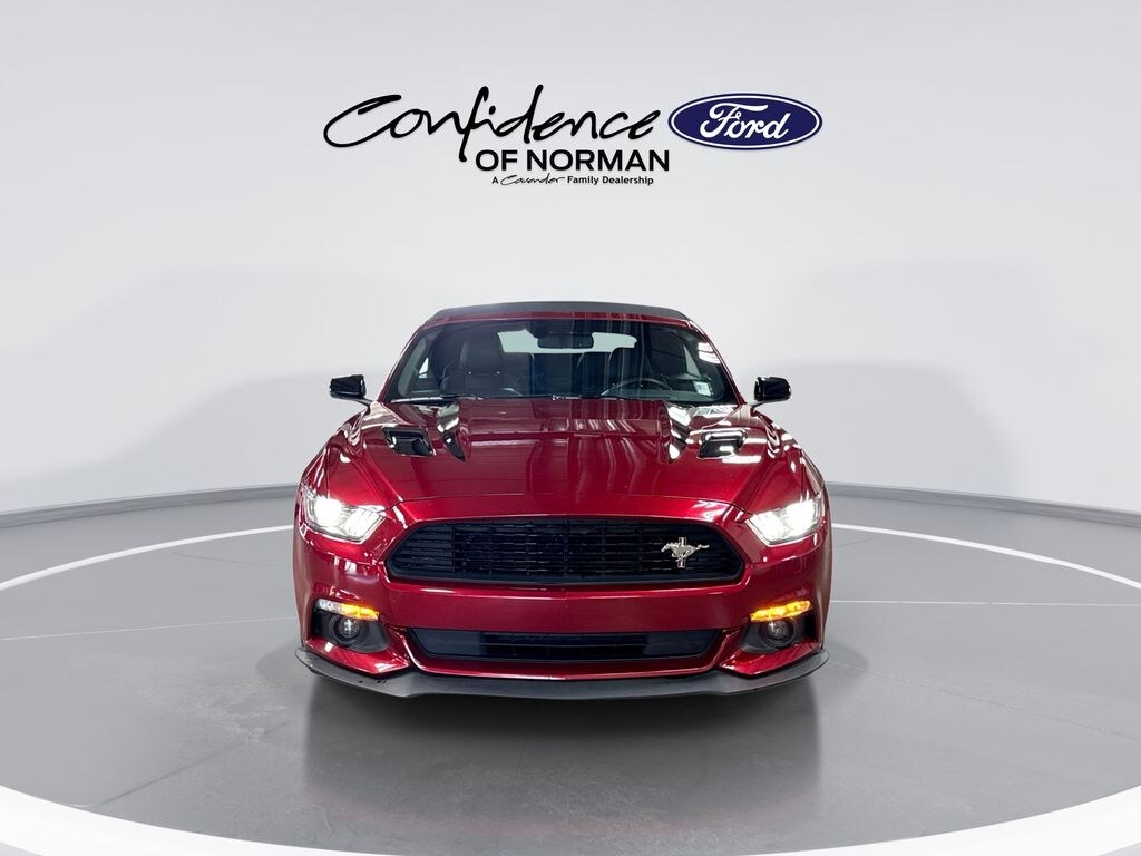 Features: California Special (Black Painted Mirror Caps, Black Raised Decklid Spoiler, Diamond Plate Aluminum Instrument Panel, Door Inserts, Leather/Miko Suede Seating Surfaces, Prem Carpeted Floor Mats w/Red Contrast Stitching, Unique Black Upper & Lower Grilles, and Wheels: 19" Ebony Black Painted Machined Alum), Equipment Group 401A (Blind Spot Info System w/Cross-Traffic Alert, HD Radio, Memory Driver Seat, Mirrors & Ambient Lighting, and Shaker Pro Audio System), 3.15 Limited Slip Axle Ratio, 4-Wheel Disc Brakes, 9 Speakers, ABS brakes, Adaptive Cruise Control w/Collision Mitigation, Air Conditioning, Alloy wheels, AM/FM radio: SiriusXM, AM/FM Stereo w/Single CD Player, Auto-dimming Rear-View mirror, Automatic temperature control, Block heater, Brake assist, Bumpers: body-color, CD player, Climate Controlled Heated/Cooled Front Seats, Compass, Convertible roof lining, Delay-off headlights, Driver door bin, Driver vanity mirror, Dual front impact airbags, Dual front side impact airbags, Ebony Tape Stripe, Electronic Stability Control, Emergency communication system: 911 Assist, Exterior Parking Camera Rear, Four wheel independent suspension, Front anti-roll bar, Front Bucket Seats, Front Center Armrest, Front dual zone A/C, Front fog lights, Front reading lights, Fully automatic headlights, Garage door transmitter, Glass rear window, Heated door mirrors, Heated front seats, High-Intensity Discharge Headlights, Illuminated entry, Knee airbag, Leather Bucket Seats, Leather Shift Knob, Low tire pressure warning, Occupant sensing airbag, Outside temperature display, Overhead console, Panic alarm, Passenger door bin, Passenger vanity mirror, Power convertible roof, Power door mirrors, Power driver seat, Power passenger seat, Power steering, Power windows, Radio data system, Rain-Sensing Windshield Wipers, Rear anti-roll bar, Rear window defroster, Remote keyless entry, Reverse Sensing System, Security system, SiriusXM Radio, Speed control, Speed-sensing steering, Speed-Sensitive Wipers, Spoiler, Steering wheel mounted audio controls, SYNC 3 Communications & Entertainment System, Tachometer, Telescoping steering wheel, Tilt steering wheel, Traction control, Trip computer, Turn signal indicator mirrors, Variably intermittent wipers, Ventilated front seats, Voice-Activated Touch-Screen Navigation System, and Voltmeter.