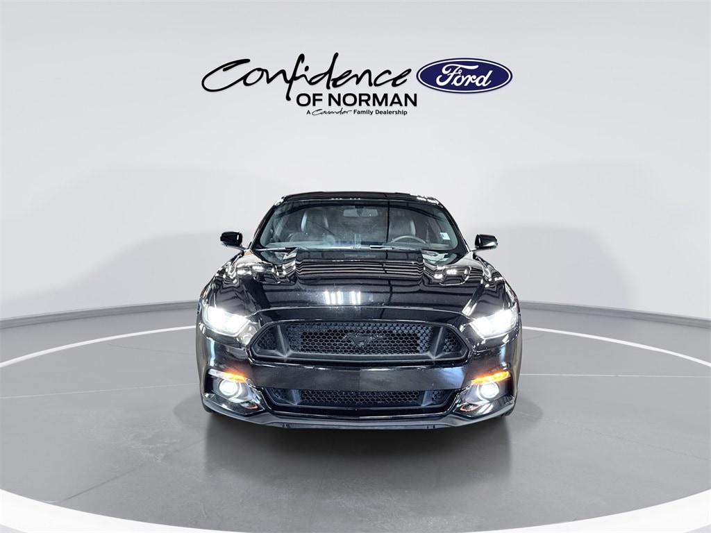 Features: Black Accent Package (Black GT, 5.0 and Pony Badges, Black Spoiler, and Wheels: 19" Painted Black Aluminum), Equipment Group 400A, ABS brakes, Alloy wheels, Compass, Electronic Stability Control, Front dual zone A/C, Heated door mirrors, Heated front seats, Illuminated entry, Low tire pressure warning, Remote keyless entry, Traction control, 3.55 Limited Slip Rear Axle, 4-Wheel Disc Brakes, 9 Speakers, Air Conditioning, AM/FM radio: SiriusXM, AM/FM Stereo w/Single CD Player, Auto-dimming Rear-View mirror, Automatic temperature control, Block heater, Brake assist, Bumpers: body-color, CD player, Climate Controlled Heated/Cooled Front Seats, Delay-off headlights, Driver door bin, Driver vanity mirror, Dual front impact airbags, Dual front side impact airbags, Emergency communication system: 911 Assist, Exterior Parking Camera Rear, Four wheel independent suspension, Front anti-roll bar, Front Bucket Seats, Front Center Armrest, Front fog lights, Front reading lights, Fully automatic headlights, Garage door transmitter, High-Intensity Discharge Headlights, Knee airbag, Leather Bucket Seats, Leather Shift Knob, Occupant sensing airbag, Outside temperature display, Overhead airbag, Overhead console, Panic alarm, Passenger door bin, Passenger vanity mirror, Power door mirrors, Power driver seat, Power passenger seat, Power steering, Power windows, Radio data system, Rear anti-roll bar, Rear window defroster, Security system, SiriusXM Radio, Speed control, Speed-sensing steering, Speed-Sensitive Wipers, Split folding rear seat, Steering wheel mounted audio controls, SYNC 3 Communications & Entertainment System, Tachometer, Telescoping steering wheel, Tilt steering wheel, Trip computer, Turn signal indicator mirrors, Variably intermittent wipers, Ventilated front seats, Voltmeter, and Wheels: 18" x 8" Magnetic Painted/Machined.