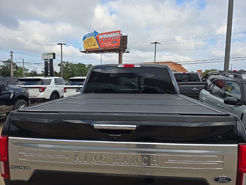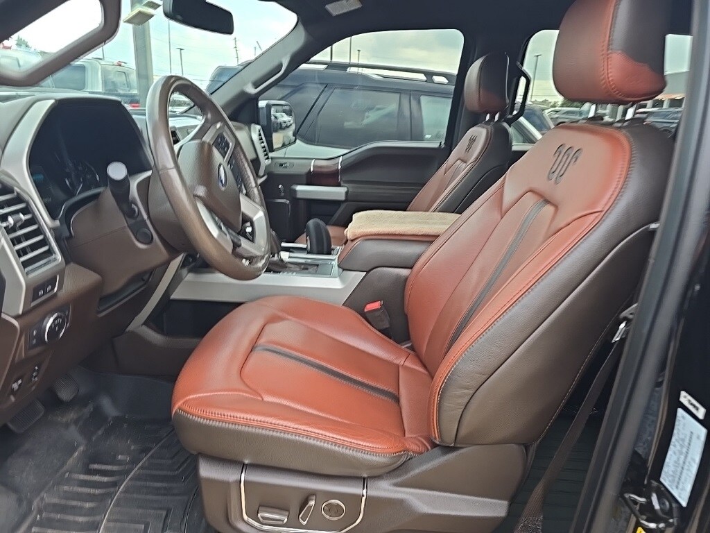 Features: Equipment Group 601A Luxury (BLIS Blind Spot Information System, Inflatable Rear Safety Belts, Power-Deployable Running Boards, and Tailgate Step w/Tailgate Lift Assist), GVWR: 7,050 lbs Payload Package, King Ranch Chrome Appearance Package (Bright Belt Moldings, Chrome Door Handles w/Body-Color Strap, Chrome Front & Rear Bumpers, Chrome Skull Caps on Exterior Mirrors, and Wheels: 20" Chrome-Like PVD), Max Trailer Tow Package (Class IV Trailer Hitch Receiver, Extended Range 36 Gallon Fuel Tank, Higher-Capacity Radiator, Higher-Power Cooling Fans, Integrated Trailer Brake Controller, Pro Trailer Backup Assist, and Upgraded Front Stabilizer Bar), 4WD, 10 Speakers, 18" Machined-Aluminum Wheels, 3.31 Axle Ratio, 4-Wheel Disc Brakes, ABS brakes, Adjustable pedals, Air Conditioning, Alloy wheels, AM/FM radio: SiriusXM, AppLink/Apple CarPlay and Android Auto, Auto High-beam Headlights, Auto tilt-away steering wheel, Auto-dimming door mirrors, Auto-dimming Rear-View mirror, Automatic temperature control, Brake assist, CD player, Compass, Delay-off headlights, Driver door bin, Driver vanity mirror, Dual front impact airbags, Dual front side impact airbags, Electronic Stability Control, Emergency communication system: SYNC 3 911 Assist, Exterior Parking Camera Rear, Front anti-roll bar, Front Bucket Seats, Front Center Armrest, Front dual zone A/C, Front fog lights, Front reading lights, Front wheel independent suspension, Fully automatic headlights, Garage door transmitter, Genuine wood dashboard insert, Genuine wood door panel insert, Heated door mirrors, Heated front seats, Heated rear seats, Heated steering wheel, Illuminated entry, King Ranch Leather Bucket Seats, Low tire pressure warning, Memory seat, Navigation System, Occupant sensing airbag, Outside temperature display, Overhead airbag, Overhead console, Panic alarm, Passenger door bin, Passenger vanity mirror, Pedal memory, Power door mirrors, Power driver seat, Power passenger seat, Power steering, Power windows, Radio data system, Radio: B&O Play Premium Audio System, Rain sensing wipers, Rear Parking Sensors, Rear reading lights, Rear seat center armrest, Rear step bumper, Rear window defroster, Remote keyless entry, Security system, Speed control, Speed-sensing steering, Split folding rear seat, Steering wheel memory, Steering wheel mounted audio controls, SYNC 3, Tachometer, Telescoping steering wheel, Tilt steering wheel, Traction control, Trip computer, Turn signal indicator mirrors, Variably intermittent wipers, Ventilated front seats, Voice-Activated Touchscreen Navigation System, and Voltmeter.