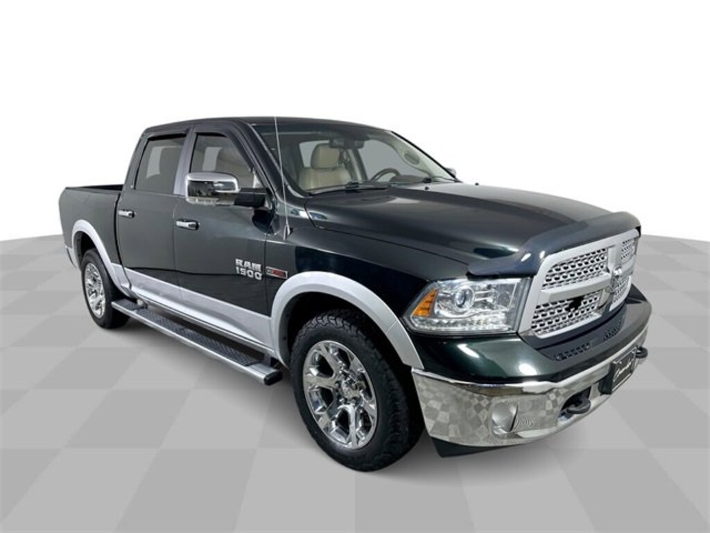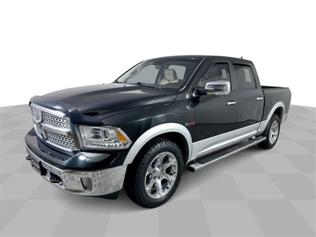 Features: , Convenience Group (Auto High Beam Headlamp Control, Keyless Enter-N-Go, Rain Sensitive Windshield Wipers, and Remote Proximity Keyless Entry), Protection Group (Tow Hooks), Quick Order Package 28H Laramie, 1500 Laramie, 4D Crew Cab, EcoDiesel 3.0L V6, 4WD, Black Forest Green Pearlcoat, Light Frost Beige/Canyon Brown w/Leather Trim 40/20/40 Bench Seat or Leather Trimmed Bucket Seats, 1 Yr. Trial (Registration Required), 10 Speakers, 115V Auxiliary Power Outlet, 20 x 9 Chrome Clad Aluminum Wheels, 3.21 Rear Axle Ratio, 3.55 Rear Axle Ratio, 4-Wheel Disc Brakes, 5-Year SiriusXM Traffic Service, 5-Year SiriusXM Travel Link Service, 8.4 Touchscreen Display, ABS brakes, Active Grille Shutters, Adjustable pedals, Air Conditioning, Alloy wheels, AM/FM radio, Anti-Spin Differential Rear Axle, Audio memory, Auto-dimming door mirrors, Auto-dimming Rear-View mirror, Automatic temperature control, Brake assist, Bumpers: chrome, Center Hub, Compass, Delay-off headlights, Driver door bin, Driver vanity mirror, Dual front impact airbags, Dual front side impact airbags, Electronic Shift, Electronic Stability Control, Emergency communication system, Folding Flat Load Floor Storage, Front & Rear Rubber Floor Mats, Front anti-roll bar, Front Center Armrest w/Storage, Front dual zone A/C, Front fog lights, Front reading lights, Front wheel independent suspension, Fully automatic headlights, Garage door transmitter, GPS Antenna Input, GPS Navigation, Harman Radio Manufacturer, HD Radio, Heated door mirrors, Heated Front Seats, Heated front seats, Heated steering wheel, High Back Seats, Illuminated entry, Integrated Voice Command w/Bluetooth, Leather steering wheel, Leather Trim 40/20/40 Bench Seat, Low tire pressure warning, Media Hub (SD, USB, AUX), Memory seat, Occupant sensing airbag, Outside temperature display, Overhead airbag, Overhead console, Panic alarm, ParkView Rear Back-Up Camera, Passenger door bin, Passenger vanity mirror, Pedal memory, Power 10-Way Memory Driver & 6-Way Passenger Seats, Power door mirrors, Power driver seat, Power passenger seat, Power steering, Power windows, Radio data system, Radio: Uconnect 8.4A AM/FM/SXM/BT, Radio: Uconnect 8.4AN AM/FM/SXM/HD/BT/NAV, Rear 60/40 Split Folding Seat, Rear anti-roll bar, Rear seat center armrest, Rear step bumper, Remote keyless entry, Remote Start System, Security system, SIRIUSXM Satellite Radio, SIRIUSXM Traffic, SiriusXM Travel Link, Speed control, Split folding rear seat, Spray In Bedliner, Steering wheel mounted audio controls, Tachometer, Tilt steering wheel, Tip Start, Traction control, Trailer Brake Control, Trip computer, Turn signal indicator mirrors, Uconnect Access, Uconnect Access 1 Year Trial, Variably intermittent wipers, Ventilated Front Seats, Ventilated front seats, Voltmeter, and Wheel to Wheel Side Steps.