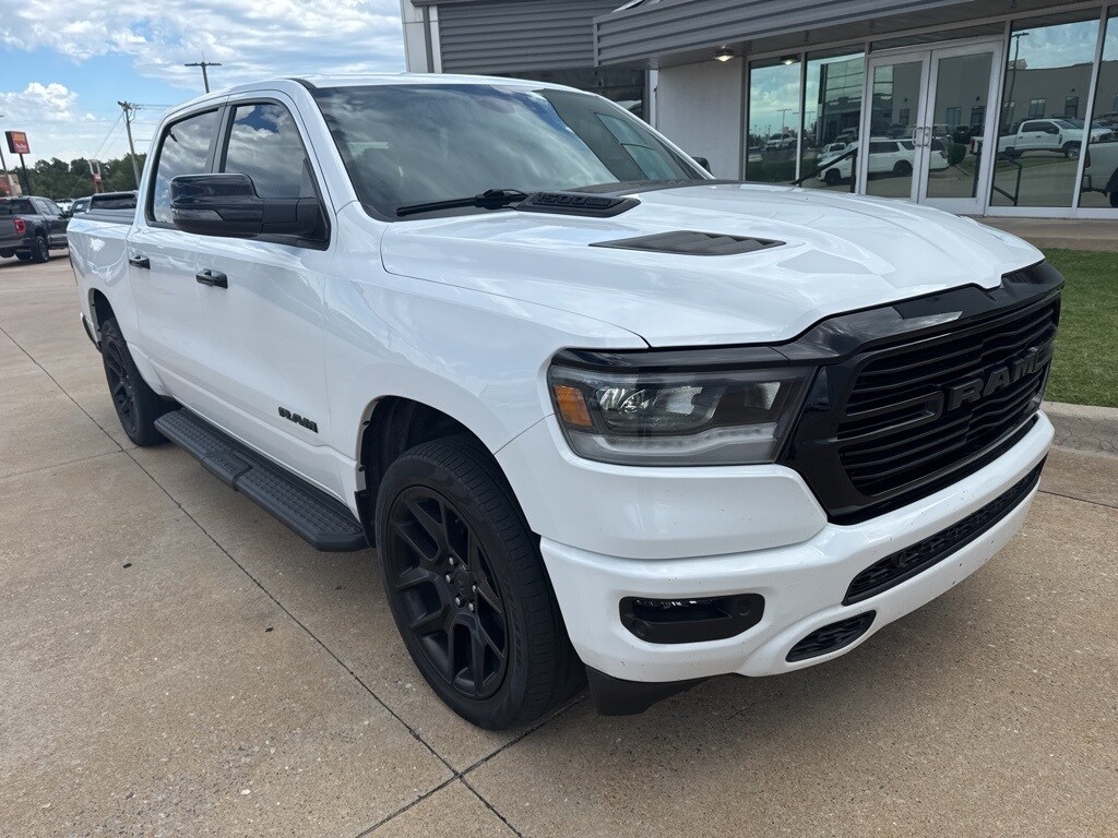 Features: Bed Utility Group (MOPAR 4 Adjustable Cargo Tie-Down Hooks, MOPAR Spray In Bedliner, and Pick-Up Box Lighting), Laramie Level B Equipment Group (12" Touchscreen Display, 2nd Row In Floor Storage Bins, 4G LTE Wi-Fi Hot Spot, Apple CarPlay, Auto High Beam Headlamp Control, Blind Spot & Cross Path Detection, Connected Travel & Traffic Services, Connectivity - US/Canada, Disassociated Touchscreen Display, Electric Shift-On-Demand Transfer Case, Foam Bottle Insert (Door Trim Panel), For Details, Visit DriveUconnect.com, For More Info, Call 800-643-2112, Front Door Accent Lighting, Front LED Fog Lamps, Global Telematics Box Module (TBM), Google Android Auto, GPS Antenna Input, GPS Navigation, harman/kardon 19 Speaker Premium Sound, HD Radio, Integrated Center Stack Radio, Integrated Voice Command w/Bluetooth, LED Reflector Headlamps, Radio: Uconnect 5 Nav w/12.0" Display, Rain Sensitive Windshield Wipers, Rear Door Accent Lighting, Rear Power Sliding Window, Rear Underseat Compartment Storage, Rear Window Defroster, Remote Tailgate Release, SiriusXM Radio Service, SiriusXM w/360L, and USB Host Flip), Night Edition (#1 Seat Foam Cushion, 3 Rear Seat Head Restraints, 4 Way Front Headrests, Accent Color Door Handles, Accent Color Premium Power Mirrors, Auto-Dimming Exterior Driver Mirror, Black Exterior Truck Badging, Black Headlamp Bezels, Black Interior Accents, Black Painted Exterior Mirrors Caps, Body Color Front Bumper, Body Color Rear Bumper w/Step Pads, Bucket Seats, Center Console Parts Module, Convex Wide-Angle Exterior Mirror Insert, Driver Seat Memory, Dual Exhaust w/Black Tips, Exterior Mirrors Courtesy Lamps, Exterior Mirrors w/Heating Element, Exterior Mirrors w/Memory, Exterior Mirrors w/Supplemental Signals, Front Seat Back Map Pockets, Full Length Upgraded Floor Console, Grille Surround 3 Black Texture 2 Black, Heated Front Seats, Heated Steering Wheel, Leather Trimmed Bucket Seats, Power 2-Way Driver Lumbar Adjust, Power 2-Way Passenger Lumbar Adjust, Power 8-Way Driver & Passenger Seats, Power-Folding Mirrors, RAM Grille Badge - Black, Rear 60/40 Folding Seat, Sport Performance Hood, Ventilated Front Seats, and Wheels: 22" x 9" Forged Aluminum), Quick Order Package 27H Laramie, 10 Speakers, 3.21 Rear Axle Ratio, 33 Gallon Fuel Tank, 4-Wheel Disc Brakes, 48V Belt Starter Generator, ABS brakes, Adjustable pedals, Air Conditioning, Alloy wheels, AM/FM radio: SiriusXM with 360L, Anti-Spin Differential Rear Axle, Apple CarPlay/Android Auto, Audio memory, Auto-dimming door mirrors, Auto-dimming Rear-View mirror, Automatic temperature control, Brake assist, Bumpers: chrome, Chrome Exterior Mirrors, Class IV Receiver Hitch, Compass, Delay-off headlights, Dome Dual LED Reading Lamp, Driver door bin, Driver vanity mirror, Dual front impact airbags, Dual front side impact airbags, Dual-Pane Panoramic Sunroof, Electronic Stability Control, Front anti-roll bar, Front Center Armrest w/Storage, Front dual zone A/C, Front fog lights, Front License Plate Bracket, Front reading lights, Front wheel independent suspension, Fully automatic headlights, Garage door transmitter, Heated door mirrors, Heated front seats, Heated steering wheel, Illuminated entry, Leather steering wheel, Leather Trim 40/20/40 Bench Seat, LED Dome/Reading Lamp, Low tire pressure warning, Manufacturer's Statement of Origin, Memory seat, Navigation System, Occupant sensing airbag, Outside temperature display, Overhea